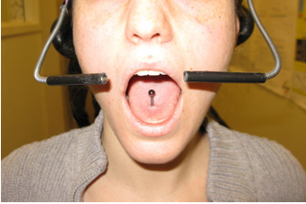 El imán lingual y un auricular permiten a una persona mover el cursor de una computadora y operar otros dispositivos con la lengua. Fuente: M Ghovanloo, Instituto Tecnológico de Georgia.