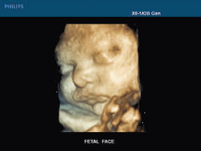Ultrasonido de diagnóstico. El ultrasonido de diagnóstico es capaz de producir imágenes no invasivas de los órganos internos del cuerpo. Sin embargo, no es bueno para producir imágenes de los huesos o tejidos que contienen aire, como los pulmones. Bajo algunas condiciones, el ultrasonido puede producir imágenes de los huesos (como en un feto o en bebés pequeños) o de los pulmones, cuando están llenos o parcialmente llenos de fluido. Uno de los usos más comunes del ultrasonido es durante el embarazo, para monitorear el crecimiento y el desarrollo del feto, pero tiene muchos otros usos, incluyendo producir imágenes del corazón, vasos sanguíneos, ojos, tiroides, cerebro, tórax, órganos abdominales, piel y músculos. Las imágenes de ultrasonido se despliegan en 2D, 3D o 4D (lo que es 3D en movimiento).