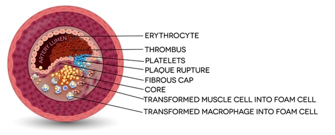 3d Illustration of blood cells with plaque buildup of cholesterol. Image Credit: Victor Josan / Shutterstock