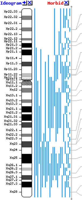 The X chromosome carries around 2000 genes and makes up about 5% of the total DNA in women and 2.5% in men. Alterations or mutations of these genes leads to disorders that are termed X-linked diseases.
