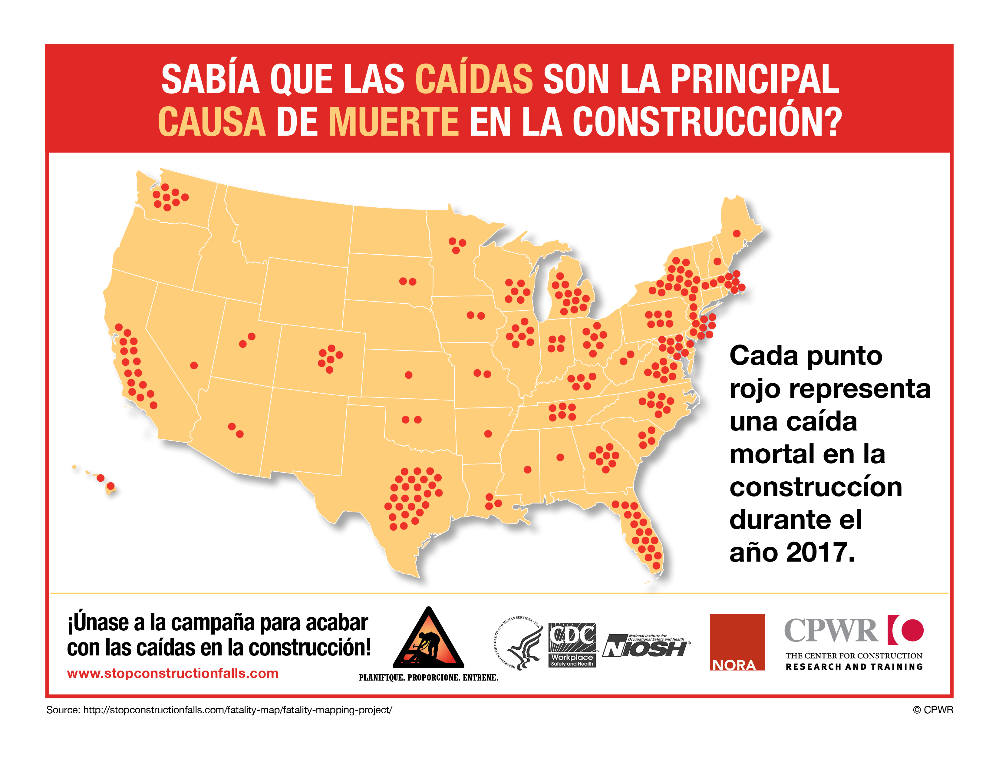 Como parte de La Campaña Nacional para Prevenir Caídas en La Construcción, OSHA, NIOSH y CPWR trabajaron juntos para desarrollar una nueva serie de infografías en inglés y español. Estas infografías se centran en la prevención de caídas en la construcción, la causa principal de las muertes en la construcción dando a conocer el riesgo y proporcionando medidas para evitar caídas – incluyendo una aplicación ‘Uso Seguro de Escaleras’ y una nueva aplicación que hace participar en el Paro General Dedicado a la Seguridad en 2016 más fácil que nunca.